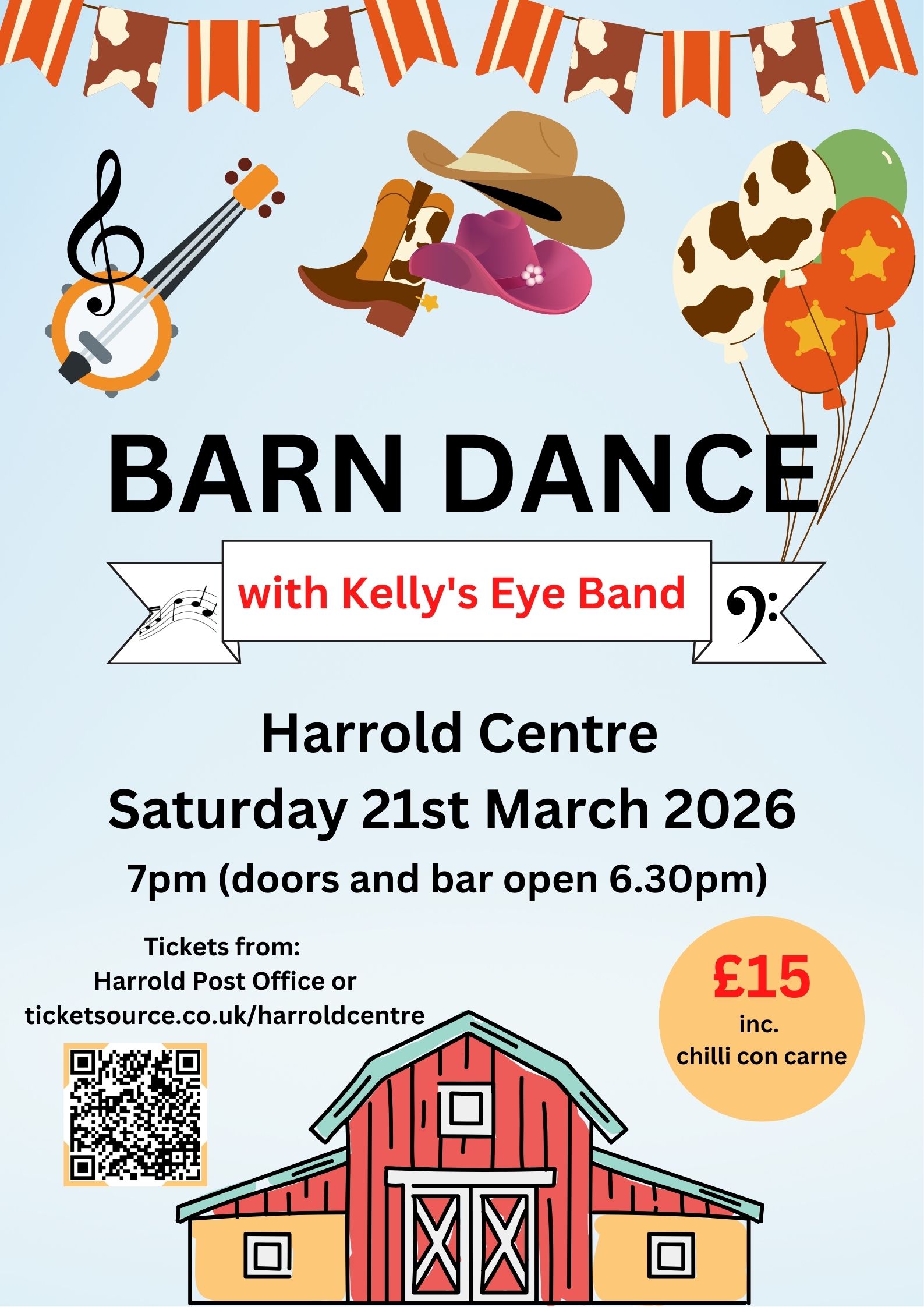 Barn Dance – 21st March 2026 by Harrold Centre | Sep 7, 2025 | What's On Barn Dance Saturday 21st March 2026 7pm start doors and bar open 6:30pm £15 entry incl. chilli con carne Event: Barn Dance. 21st March 2026 Start: 7pm