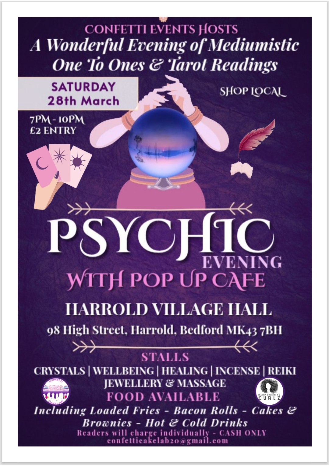 Event: Psychic evening, Harrold Centre, 28th March 7pm-10pm